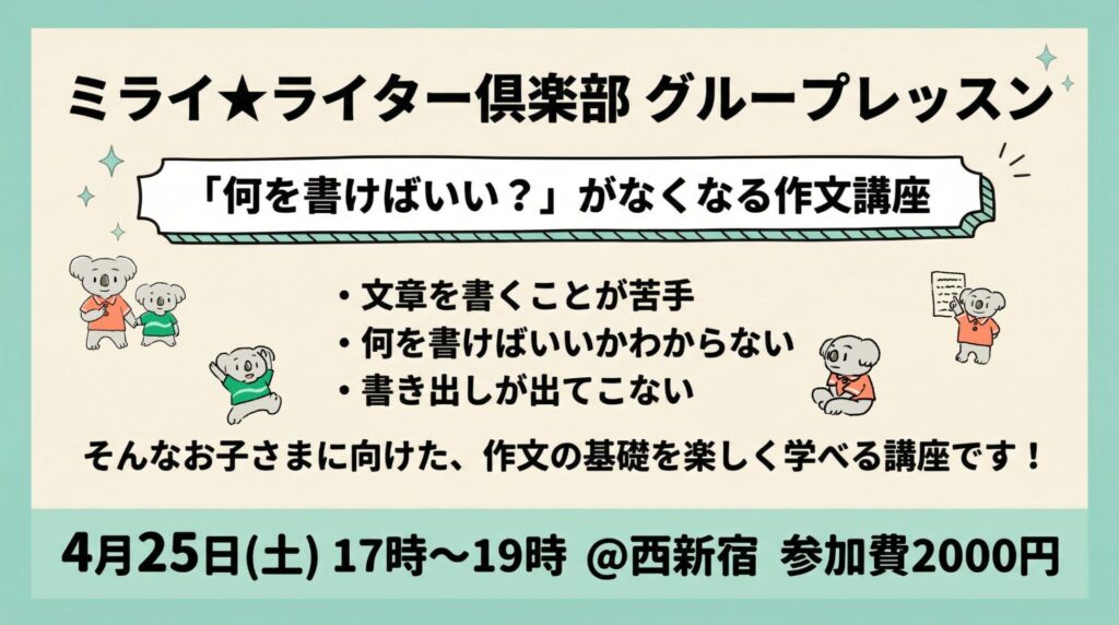 🌸 「何を書けばいい?」がなくなる作文講座